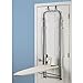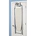 This over-the-door ironing board from Whitney Design mounts over the top of a door which allows the user convenience in use and convenience in storage. When stored, it folds flat against the door. It comes with two thicknesses of hooks to fit either a residential door or a thicker commercial door. The mounting frame is made from sturdy tubular steel and is powder coated in satin silver and provides a stable ironing surface. The board features a built-in iron holder. The size of the ironing surface measures 14-1/2-inch by 42-inch. No assembly is required and no tools are required for mounting. The ironing cover is cotton in a natural color. Item #144211.